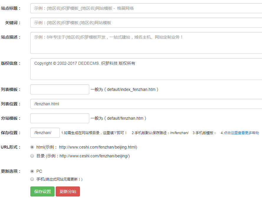 2、安裝方便快捷,本插件上傳XML模塊安裝后,設(shè)置分站的TDK后,指定好分站模板即可一鍵更新生成分站。