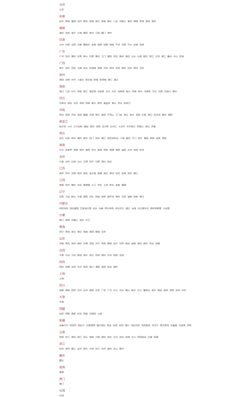 當(dāng)前欄目下城市分站:{dede:city type='son'} [field:title/] {/dede:city}