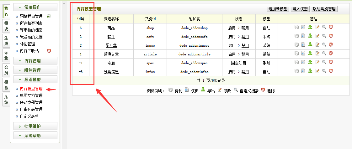 3、后臺(tái) - 核心 - 頻道模型 - 內(nèi)容模型管理