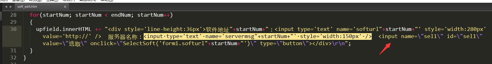 2、打開 /dede/templets/soft_edit.htm 找到