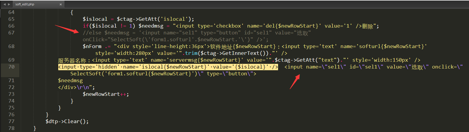 3、打開 /dede/soft_edit.php 找到