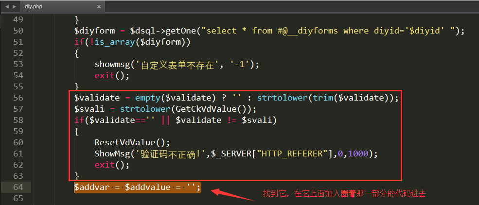 2、/plus/diy.php 里面添加驗(yàn)證碼代碼,找到
