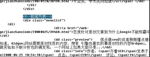 右鍵查看源文件 找到區(qū)域開始的HTML,就是找文章列表開始的標(biāo)志。