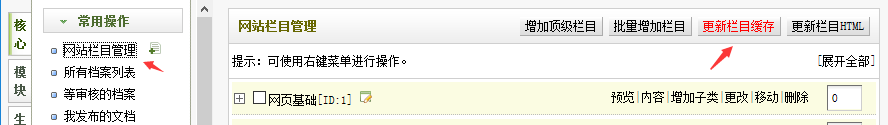 注意:以下操作,所有文檔會(huì)被清空,欄目不會(huì)清空