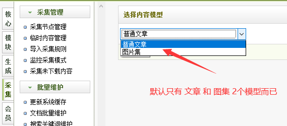織夢(mèng)后臺(tái)采集模塊添加新節(jié)點(diǎn)時(shí),默認(rèn)只有 【普通文章】和【圖片集】2個(gè)模型可選而已