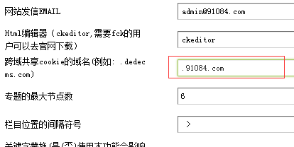 后臺-系統(tǒng)-系統(tǒng)配置參數(shù)-核心設(shè)置-跨域共享cookie的域名(例如:.91084.com)