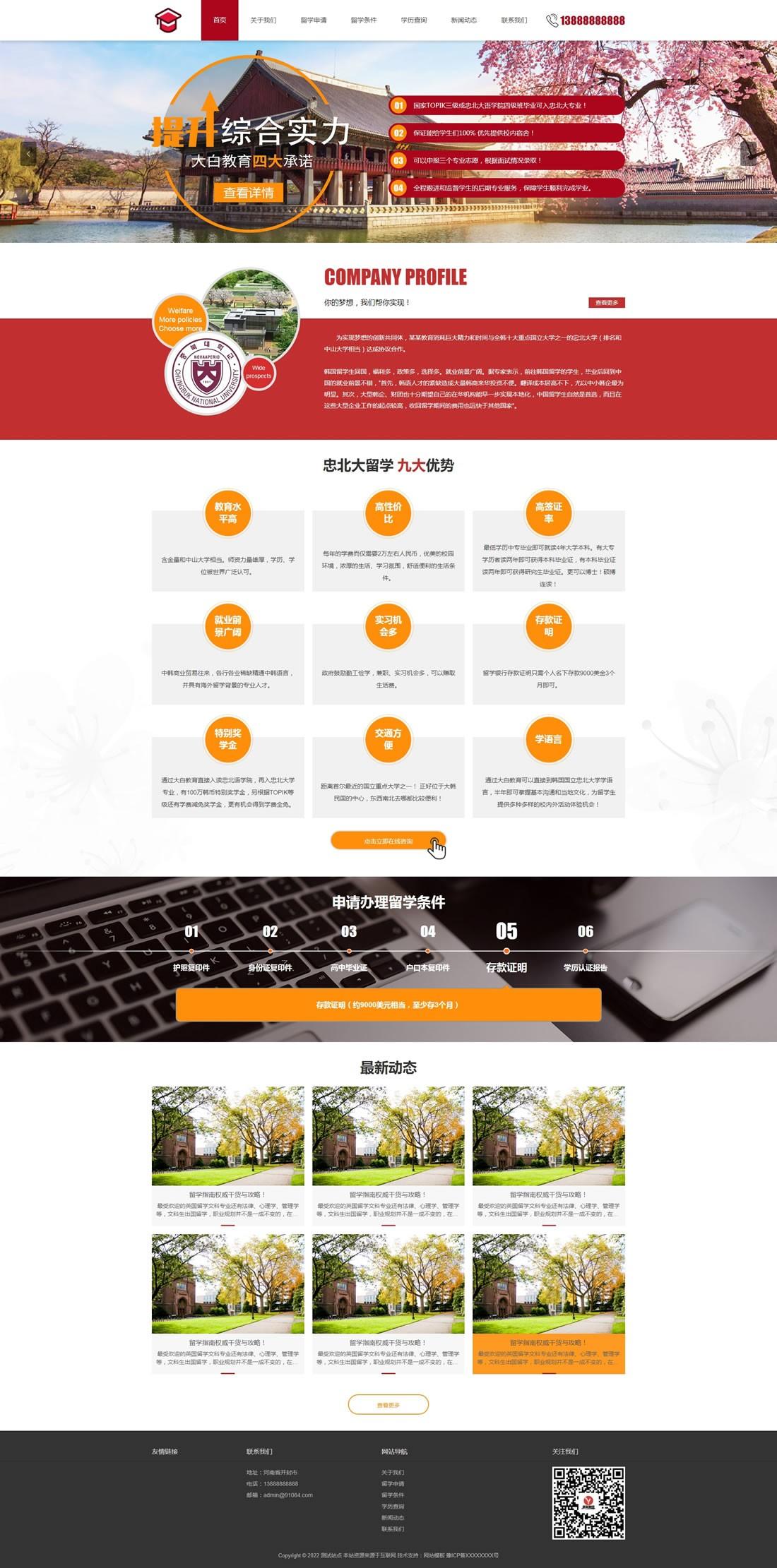 教育培訓留學指南類網站pbootcms模板(帶手機端)+利于SEO優(yōu)化