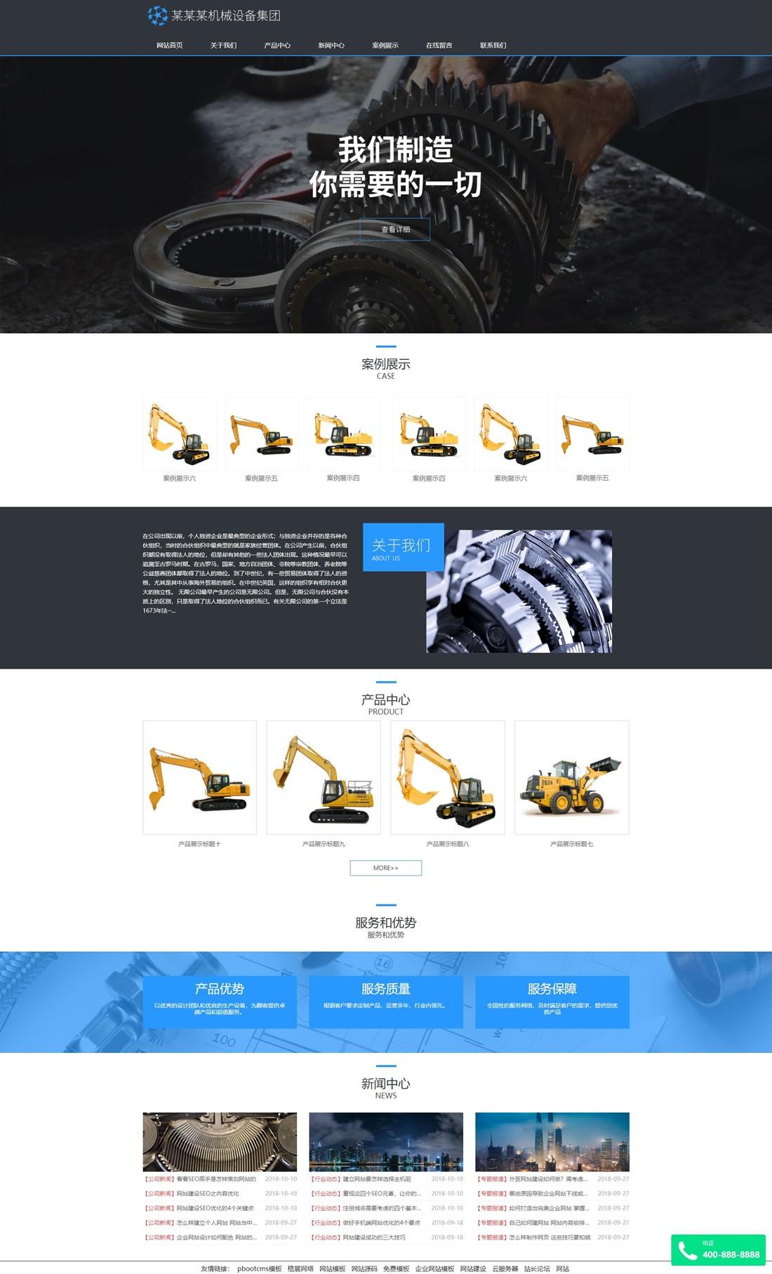 大型機械設(shè)備類網(wǎng)站pbootcms模板(自適應(yīng)手機端)+利于SEO優(yōu)化