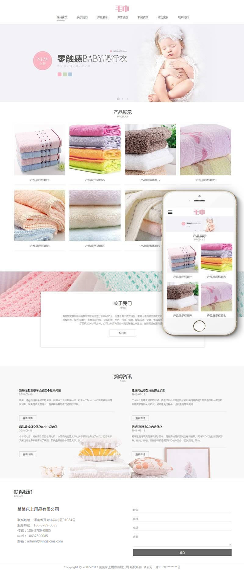 織夢最新內(nèi)核開發(fā)的模板,該模板屬于企業(yè)通用類、毛巾、浴巾、床上用品、生活用品類企業(yè)都可使用,