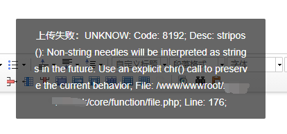 pbootcms后臺上傳附件報錯UNKNOW: Code: 8192; Desc: stripos(),,意思是上未知錯誤代碼8192。