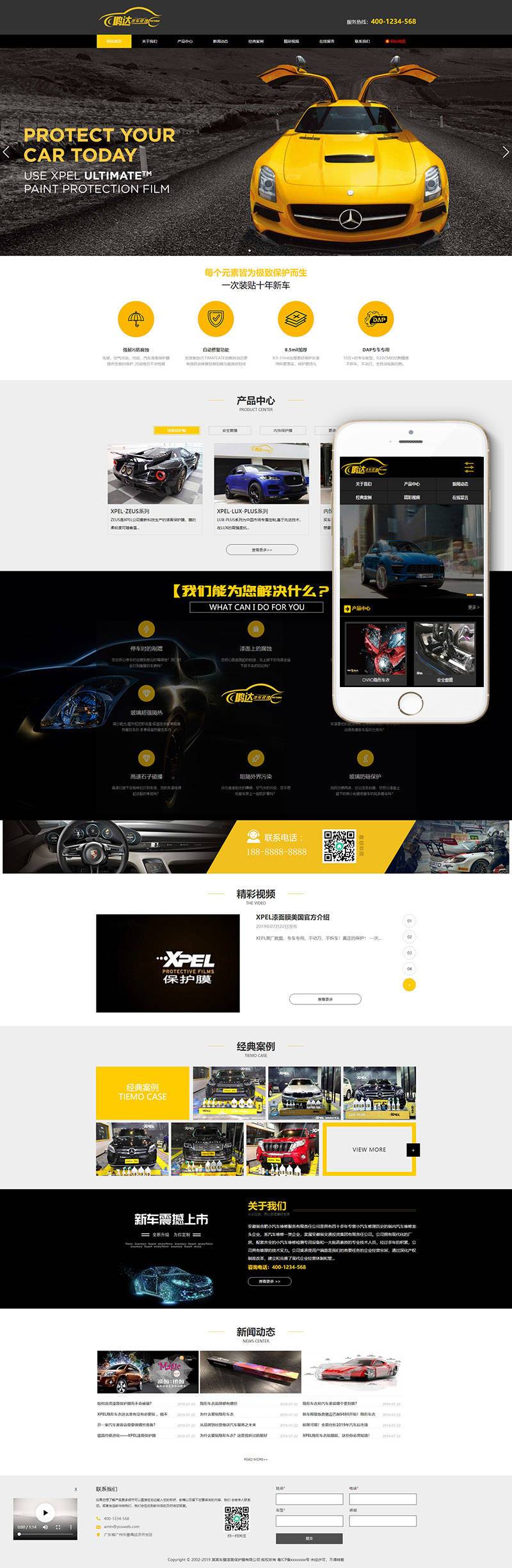 汽車美容漆面保護膜網(wǎng)站織夢模板(帶手機端)+PC+wap+利于SEO優(yōu)化
