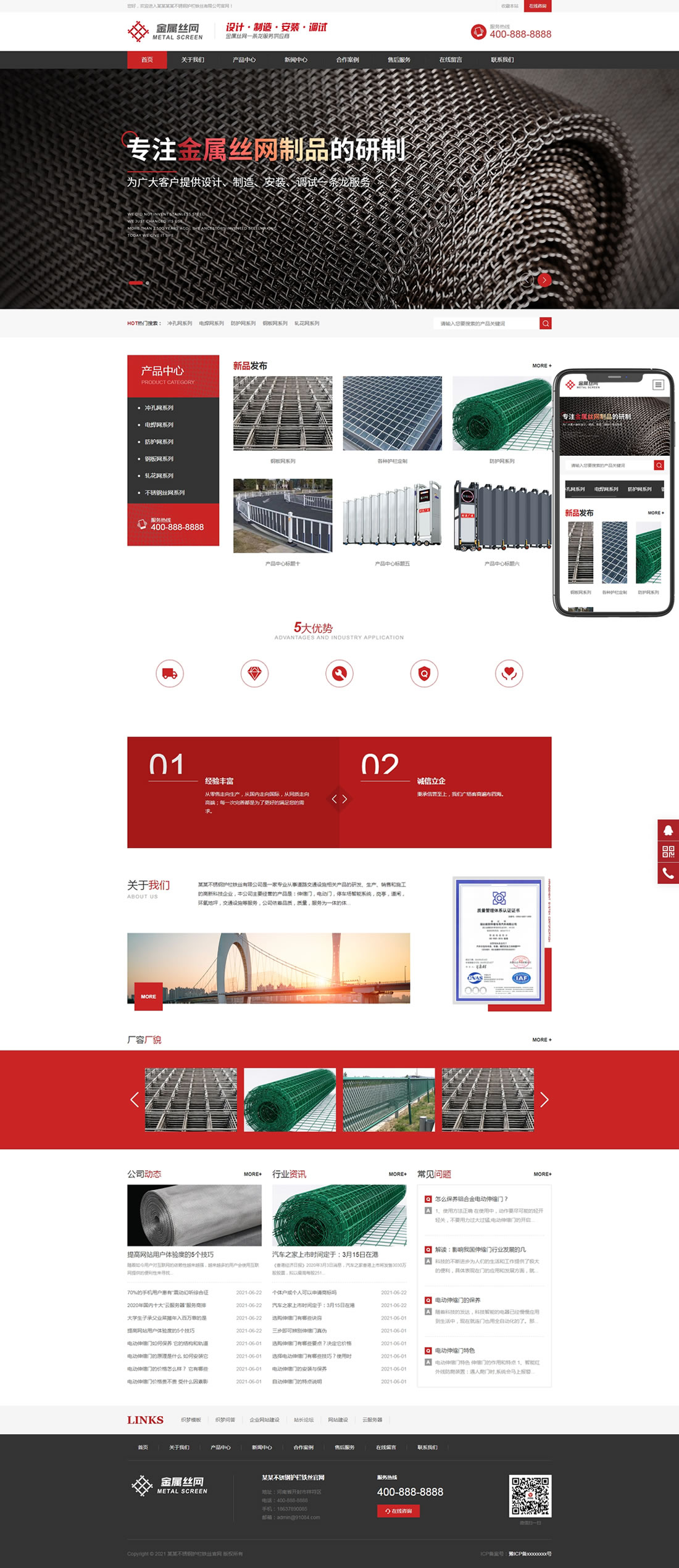 金屬絲網(wǎng)制品類網(wǎng)站織夢模板(自適應(yīng)手機端)+PC+wap+利于SEO優(yōu)化