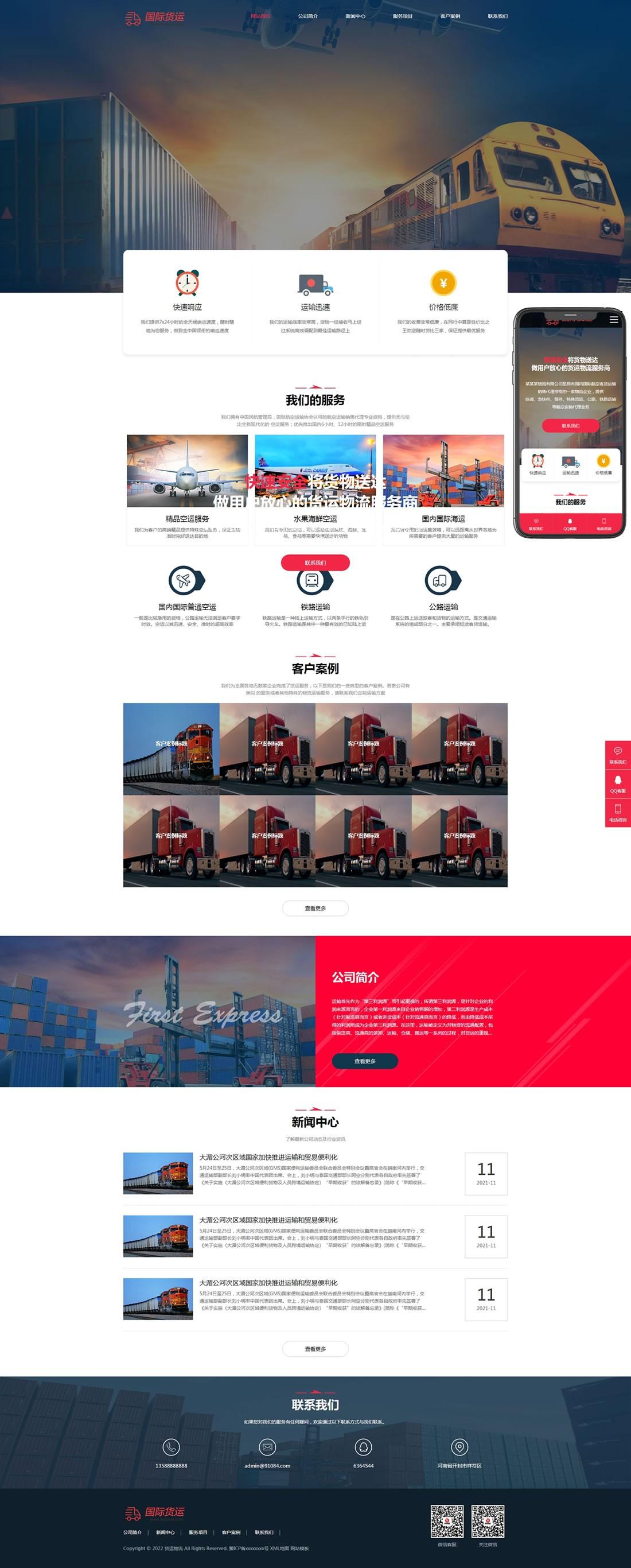 快遞物流國(guó)際貨運(yùn)公司類網(wǎng)站pbootcms模板(自適應(yīng)手機(jī)端)+利于SEO優(yōu)化