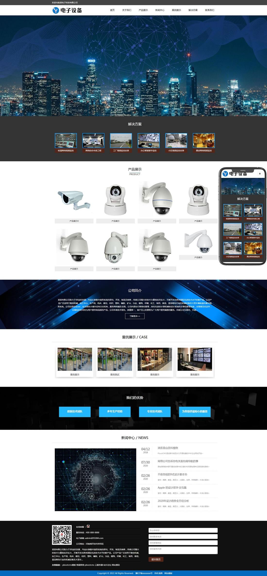 電子監(jiān)控設備類網(wǎng)站pbootcms模板(自適應手機端)+利于SEO優(yōu)化