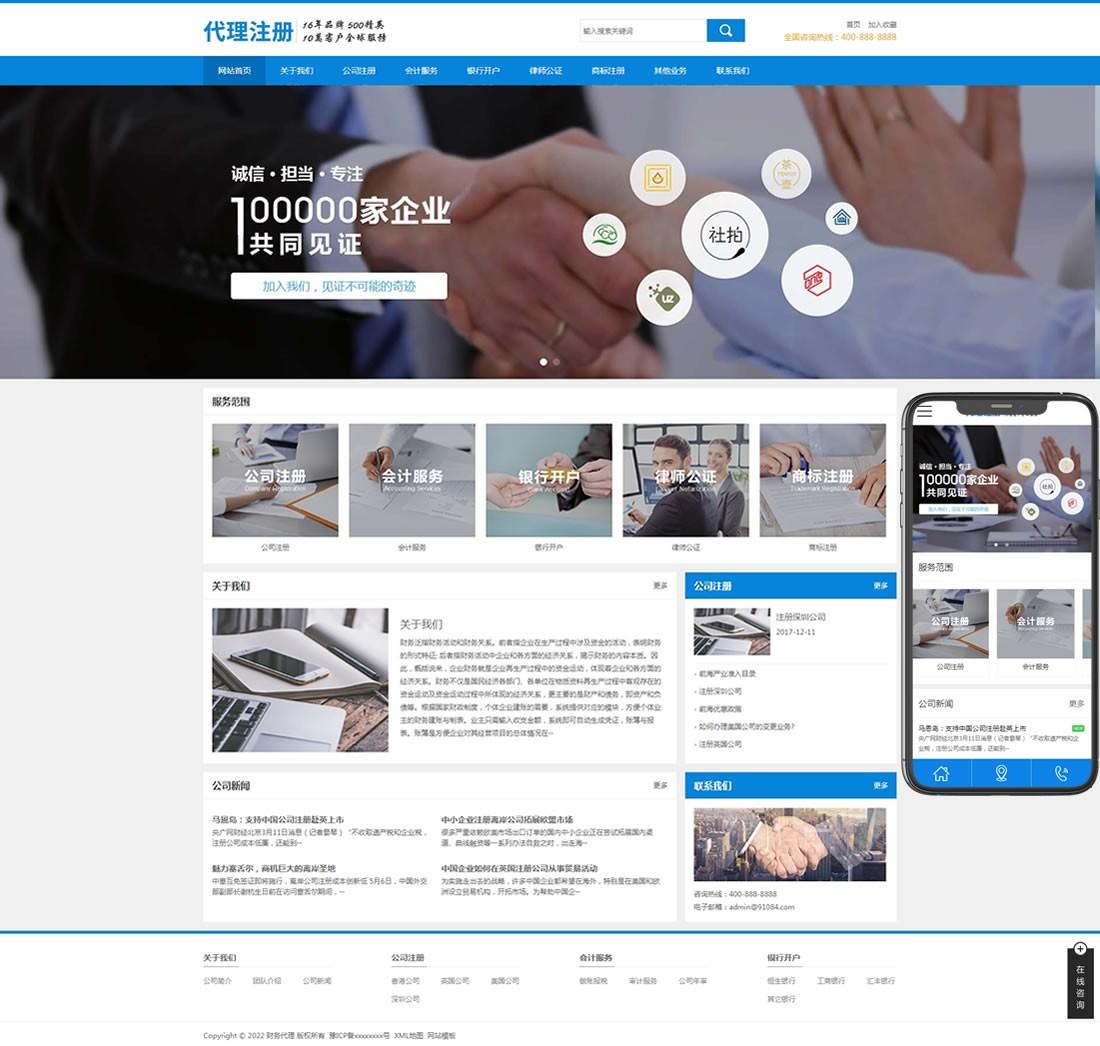 公司注冊財務(wù)會計類網(wǎng)站pbootcms模板(帶手機端)