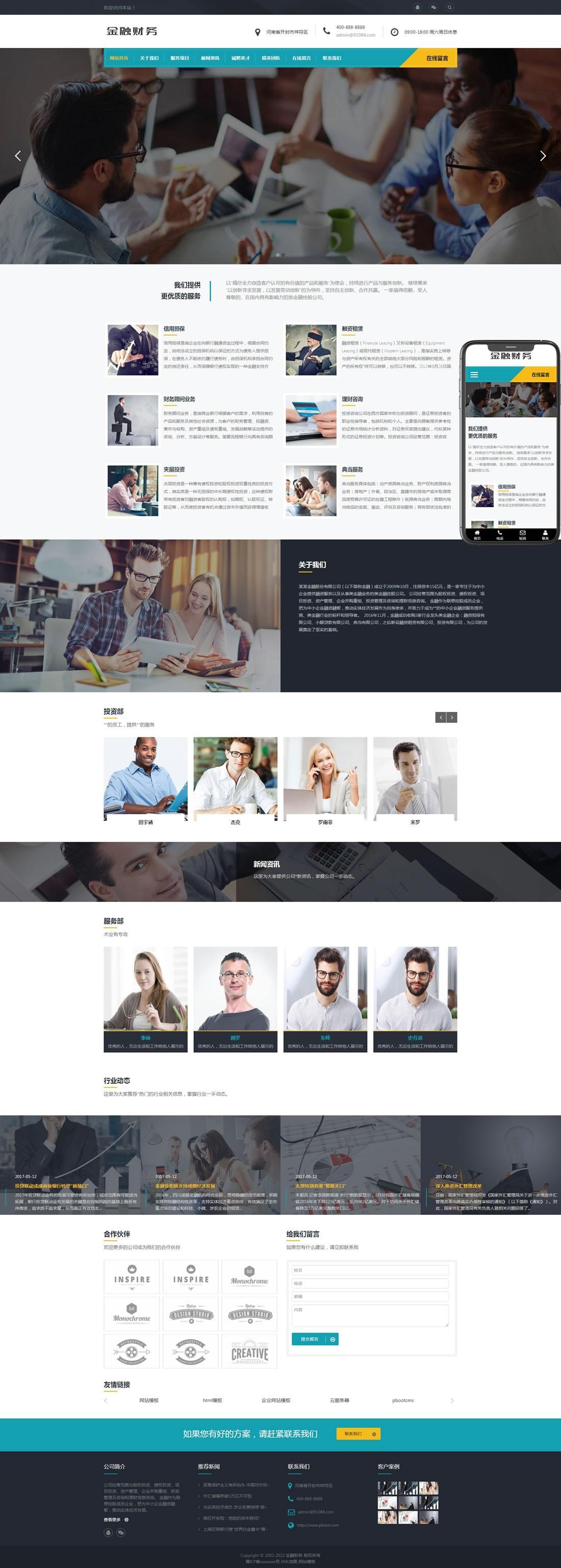 pbootcms模板 > 金融擔(dān)保投資風(fēng)險(xiǎn)類網(wǎng)站pbootcms模板(自適應(yīng)手機(jī)端)