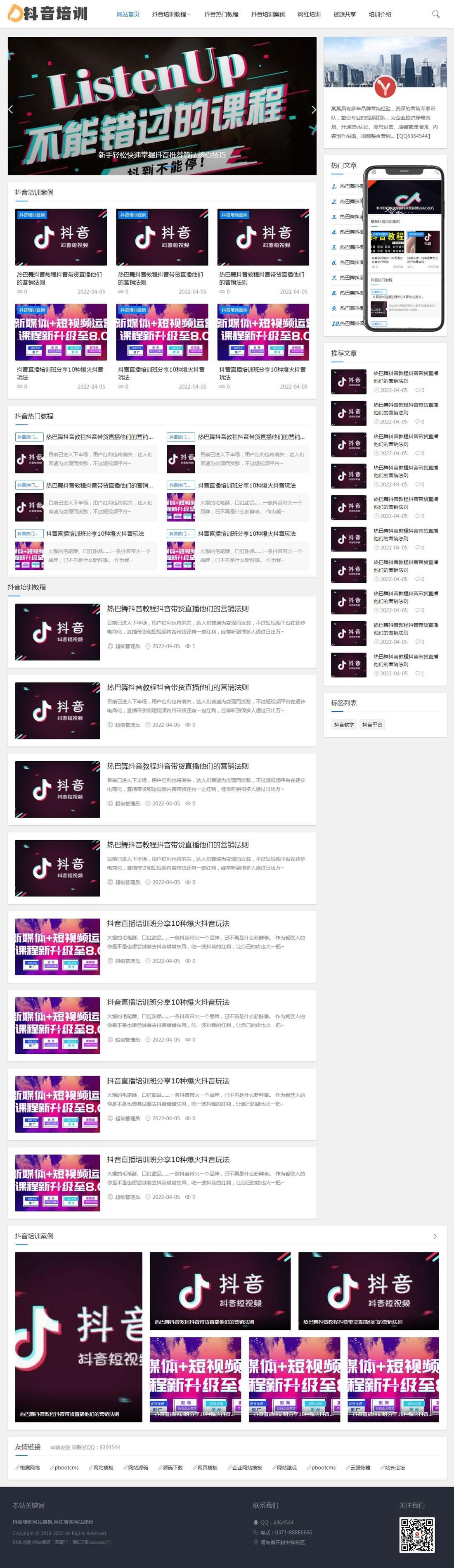 pbootcms模板 > 抖音培訓(xùn)資訊教材類網(wǎng)站pbootcms模板(自適應(yīng)手機(jī)端)