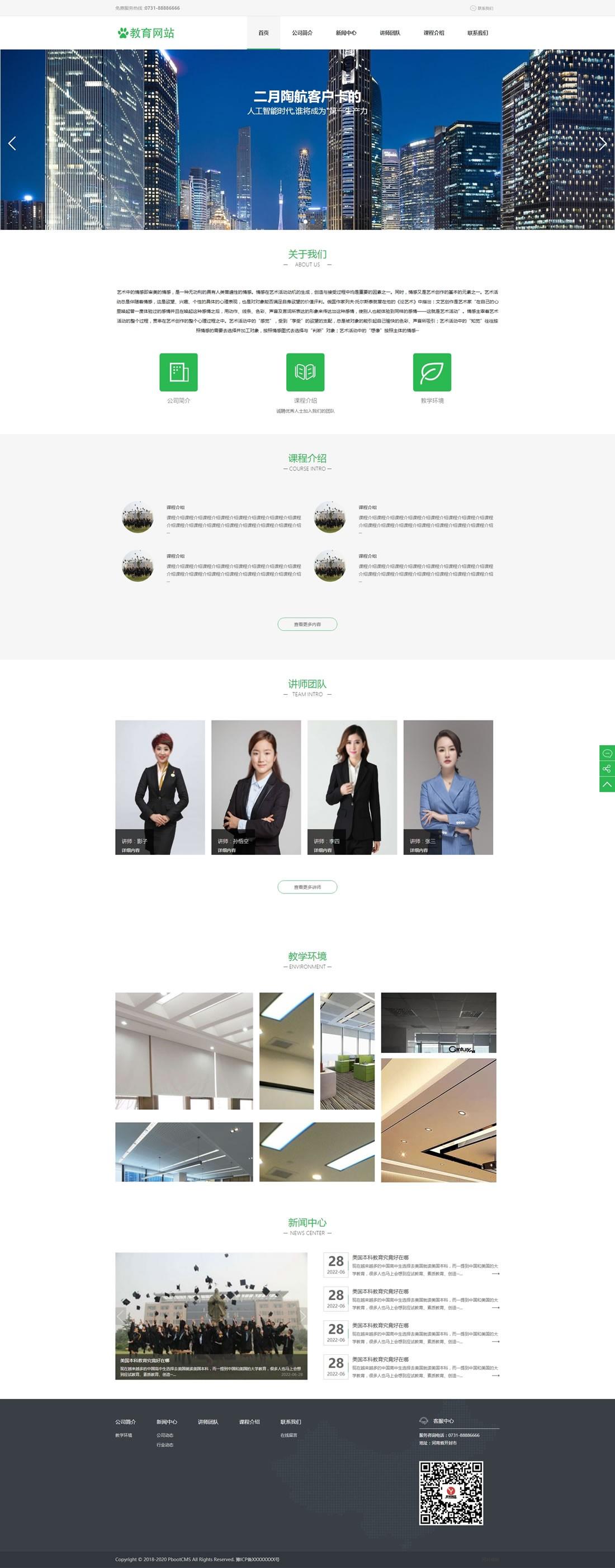 PbootCMS內核開發(fā)的模板,該模板屬于教育機構、交友培訓、培訓課程類企業(yè)使用!