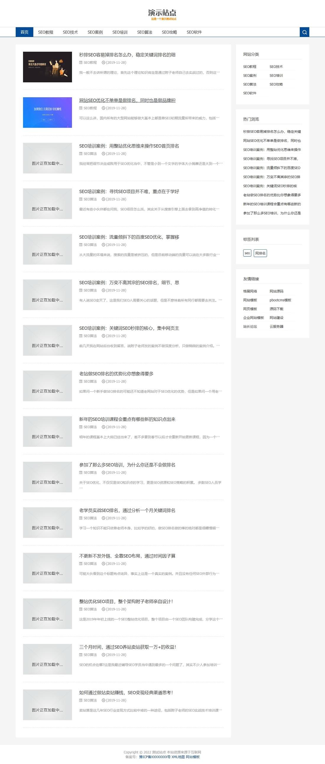 PbootCMS內(nèi)核開發(fā)的模板,該模板屬于SEO優(yōu)化、SEO資訊、個人博客類企業(yè)使用!