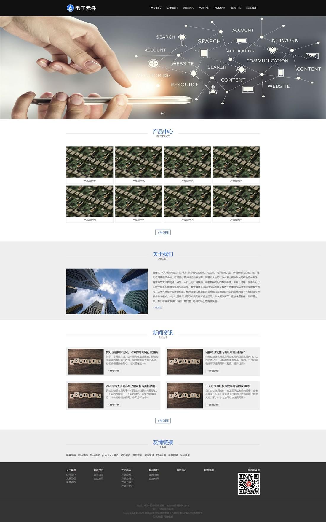 PbootCMS內(nèi)核開發(fā)的模板,該模板屬于電子設(shè)備、電子元件類企業(yè)使用!