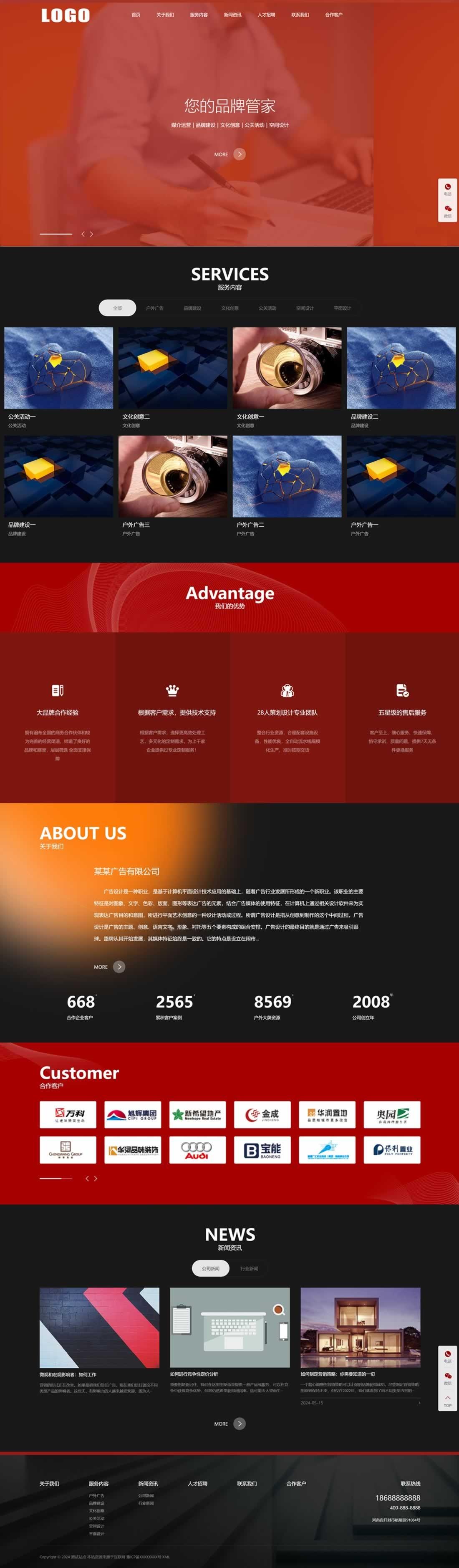 PbootCMS內(nèi)核開發(fā)的模板,該模板屬于廣告策劃、品牌設(shè)計(jì)類企業(yè)使用!