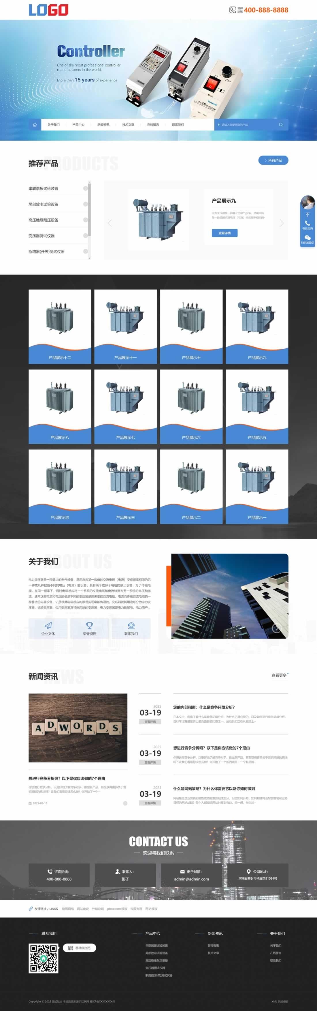 PbootCMS內(nèi)核開發(fā)的模板,該模板屬于電力設(shè)備、變壓器類企業(yè)使用!