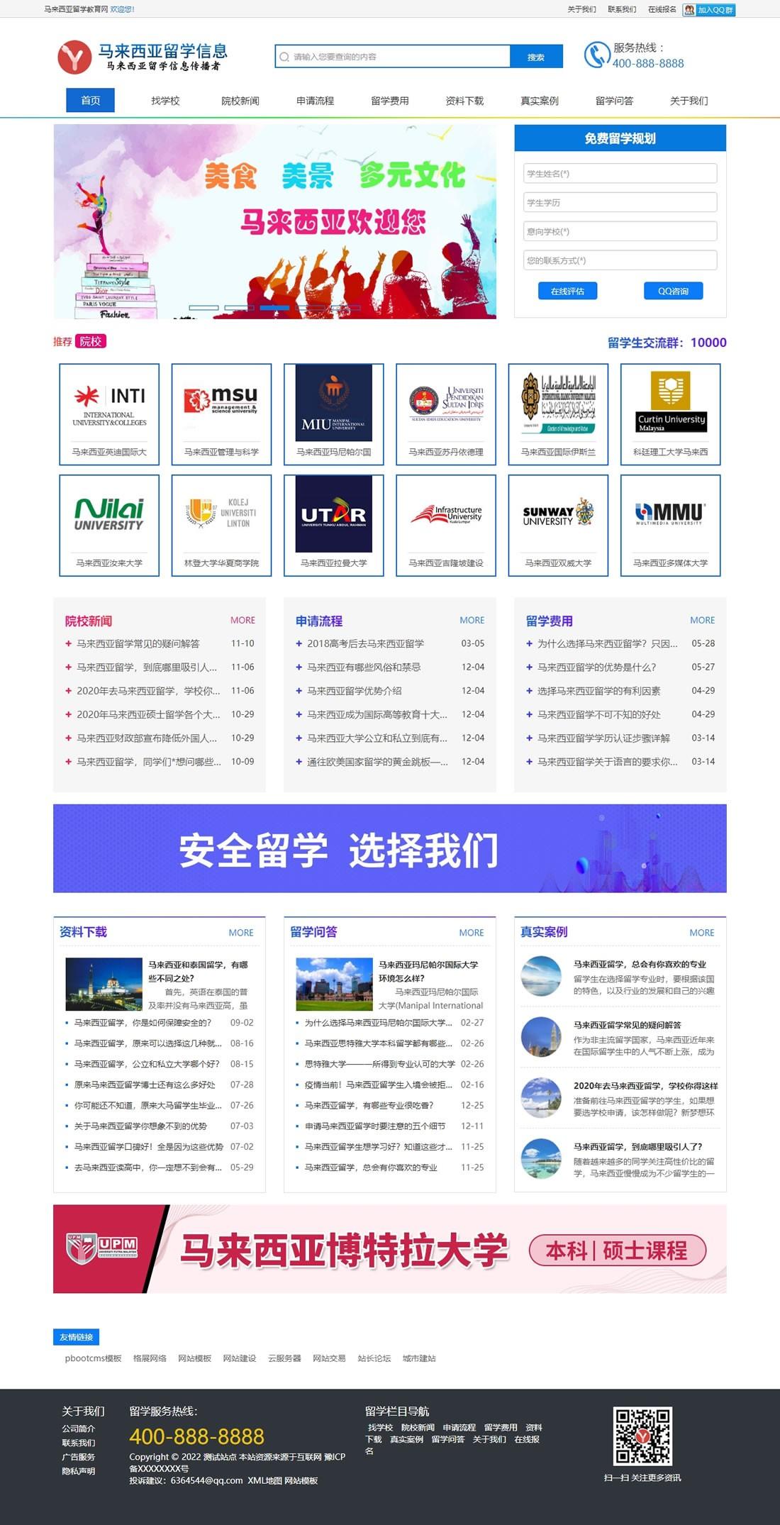出國留學留學教育類網站pbootcms模板(自適應手機端)+利于SEO優(yōu)化