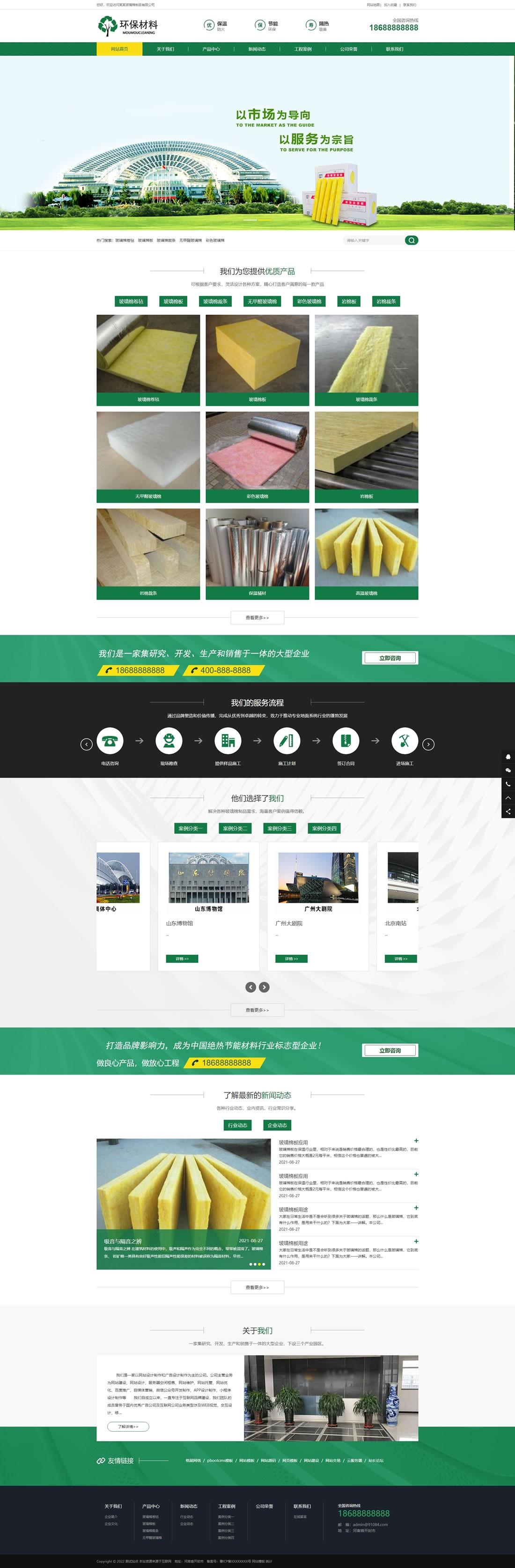 玻璃棉板環(huán)保類網(wǎng)站pbootcms模板(帶手機端)