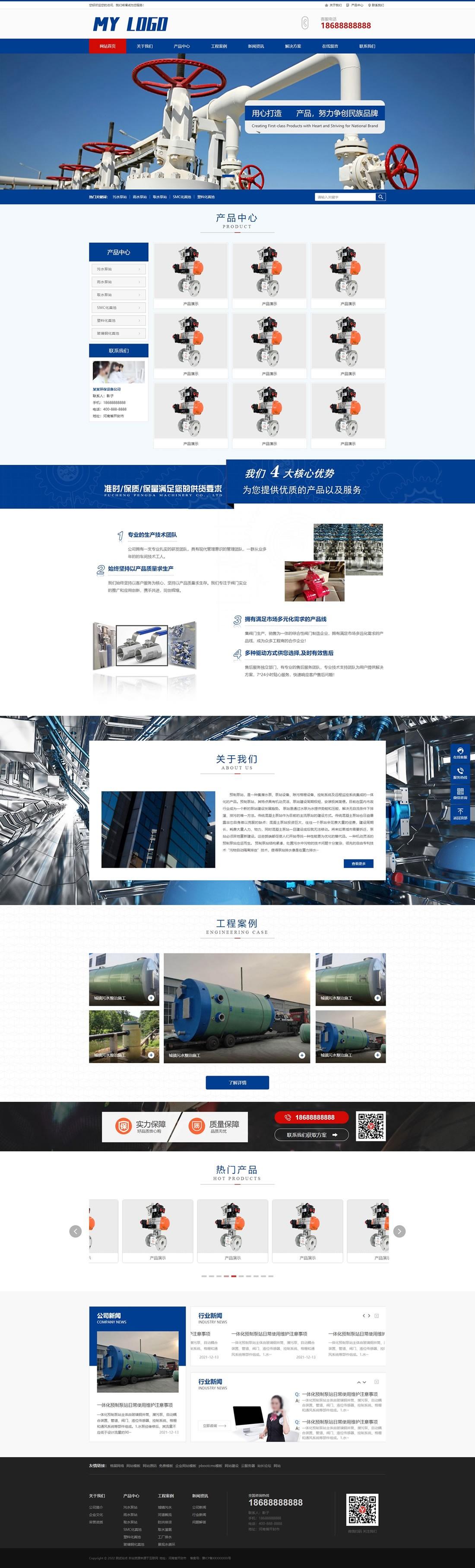 PbootCMS內(nèi)核開發(fā)的模板,該模板屬于環(huán)保設(shè)備、污水泵站類企業(yè)使用!