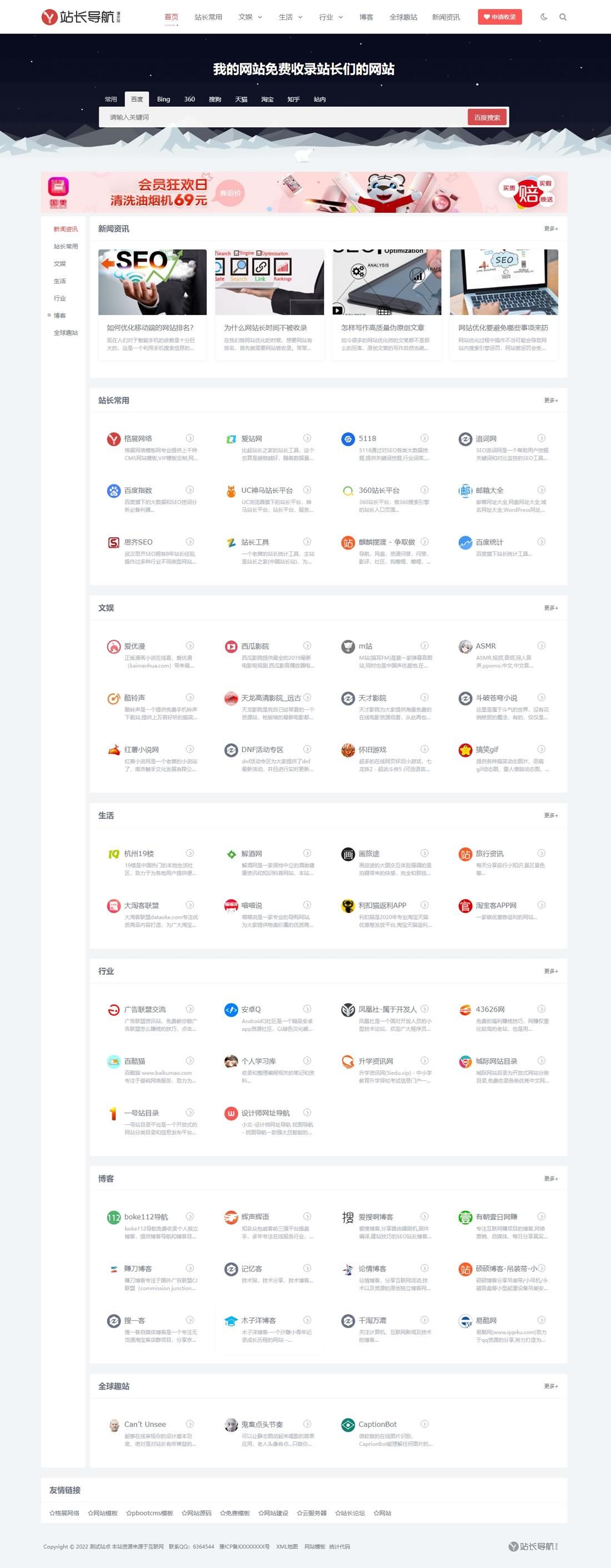 pbootcms模板 > 站長導航網(wǎng)址收錄類網(wǎng)站pbootcms模板(自適應手機端)+文章評論