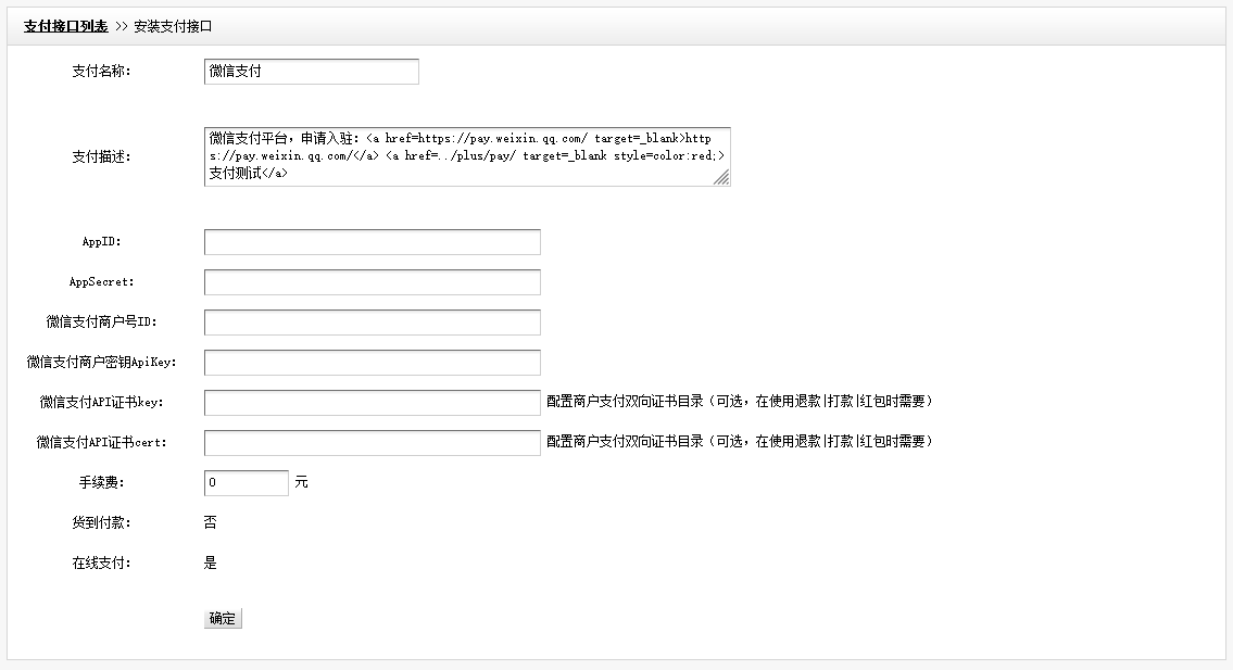安裝插件:后臺-模塊-上傳新模塊-安裝,填寫支付的配置參數(shù),完成,支付測試看效果