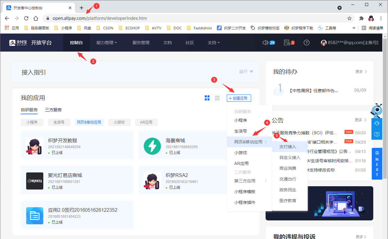 申請開通認證支付寶支付資格,添加應(yīng)用