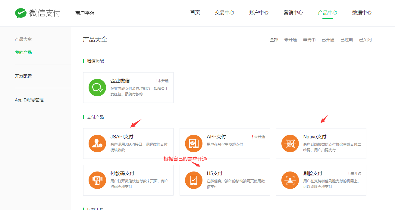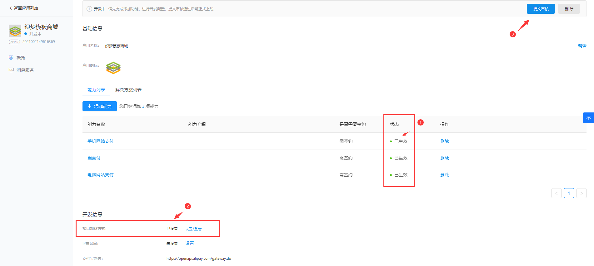 根據(jù)自己的需求添加能力 和 去商家中心綁定APPID