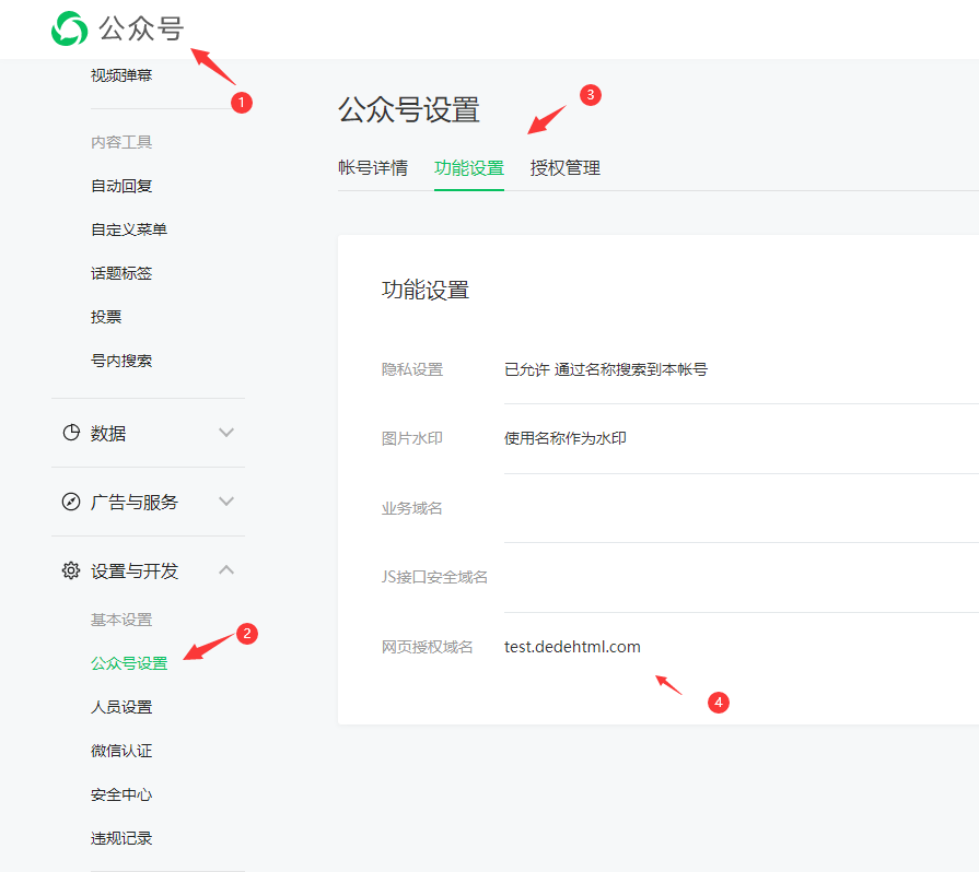 在公眾平臺上設(shè)置網(wǎng)頁授權(quán)域名