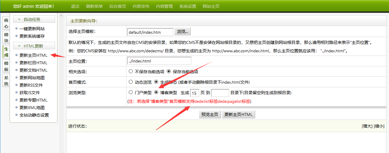 安裝完成后-首頁模板添加下面的數(shù)據(jù)列表標簽和分頁標簽-更新系統(tǒng)緩存-生成首頁