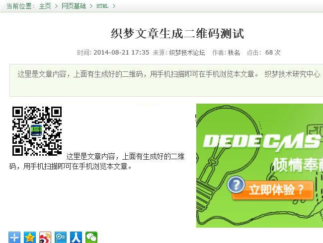 <script src="{dede:global.cfg_cmsurl/}/qrcode/?aid={dede:field name='id'/}" language="javascript"></script>
