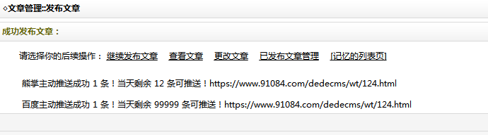 至此,織夢發(fā)布文檔主動推送到百度功能完成。