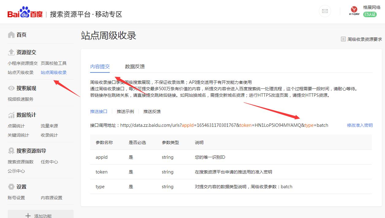 登錄你的百度平臺 https://ziyuan.baidu.com 獲取接口調(diào)用地址
