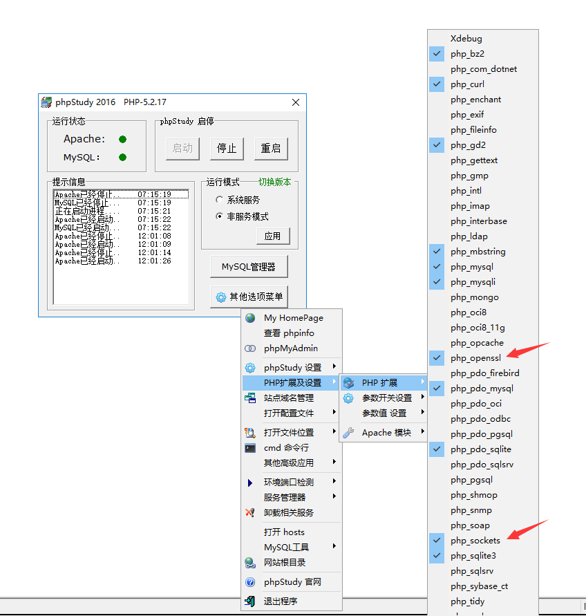 例如本地環(huán)境phpstudy開啟這2個擴展