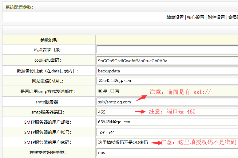 - SMTP服務器的用戶郵箱:yingzicms@163.com 或者 6364544@qq.com