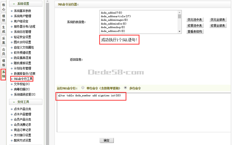 也可以在織夢(mèng)后臺(tái)執(zhí)行sql語(yǔ)句新增字段