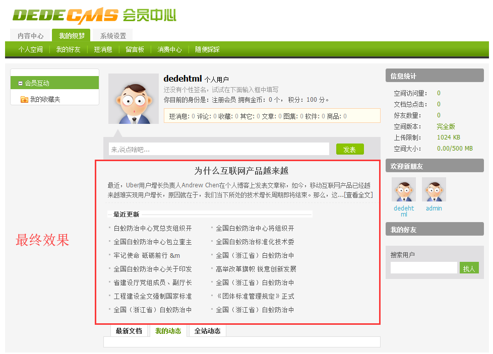 在會(huì)員首頁模板里加上調(diào)用代碼