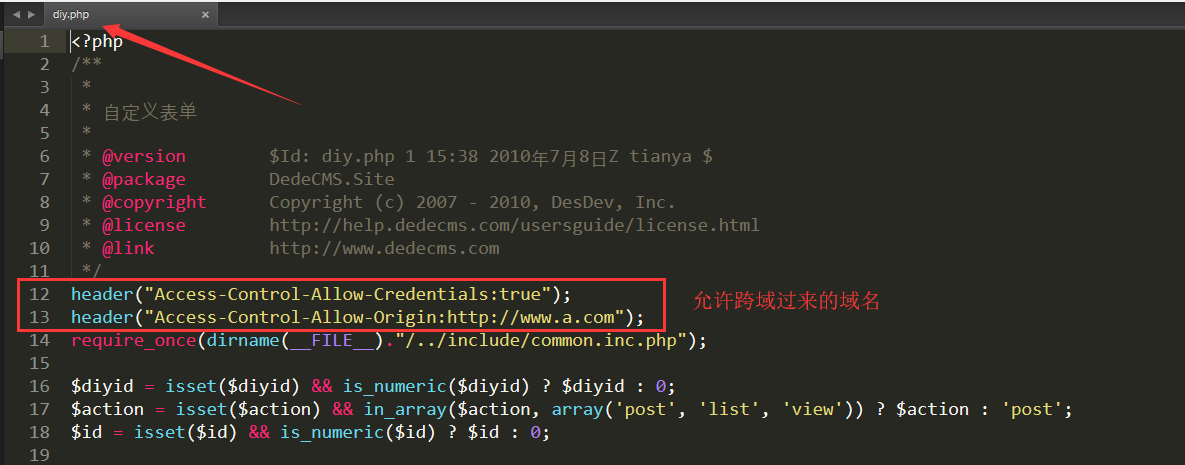 header("Access-Control-Allow-Credentials:true");header("Access-Control-Allow-Origin:http://www.a.com");