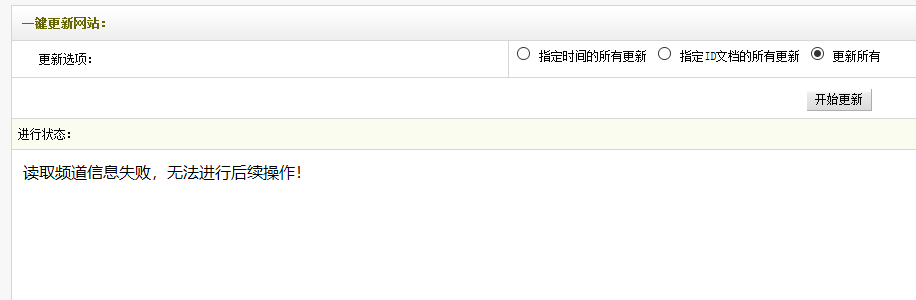 那是因?yàn)橛形臋n使用了以前添加的內(nèi)容模型和欄目,而內(nèi)容模型又刪除了,文檔還在,生成全站或者生成文檔時(shí)就會(huì)提示“讀取頻道信息失敗,無(wú)法進(jìn)行后續(xù)操作!”