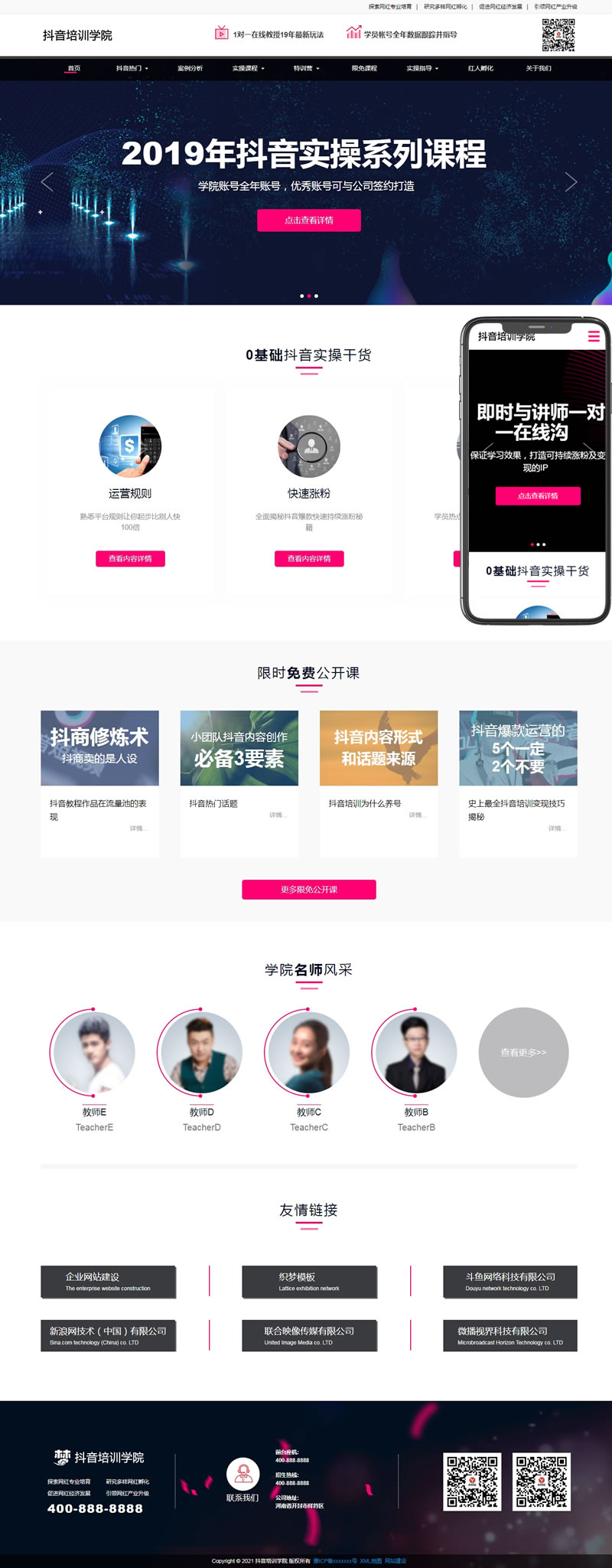 抖音培訓(xùn)學(xué)院類(lèi)網(wǎng)站織夢(mèng)模板(自適應(yīng)手機(jī)端)