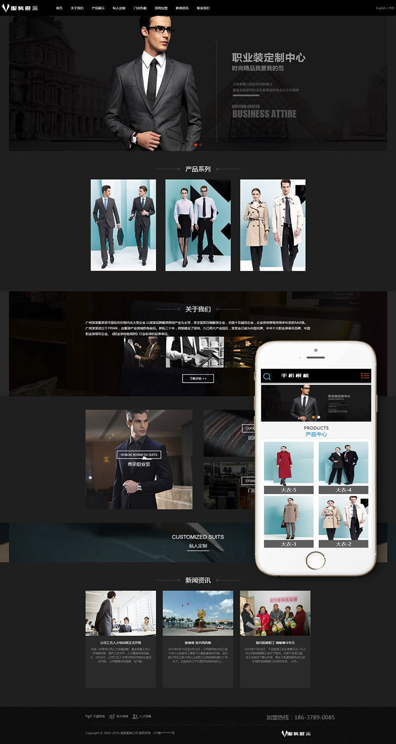 織夢最新內(nèi)核開發(fā)的模板,該模板屬于中英雙語、服裝、禮服類企業(yè)使用,一款適用性很強的模板,基本可以適合各行業(yè)的企業(yè)網(wǎng)站!