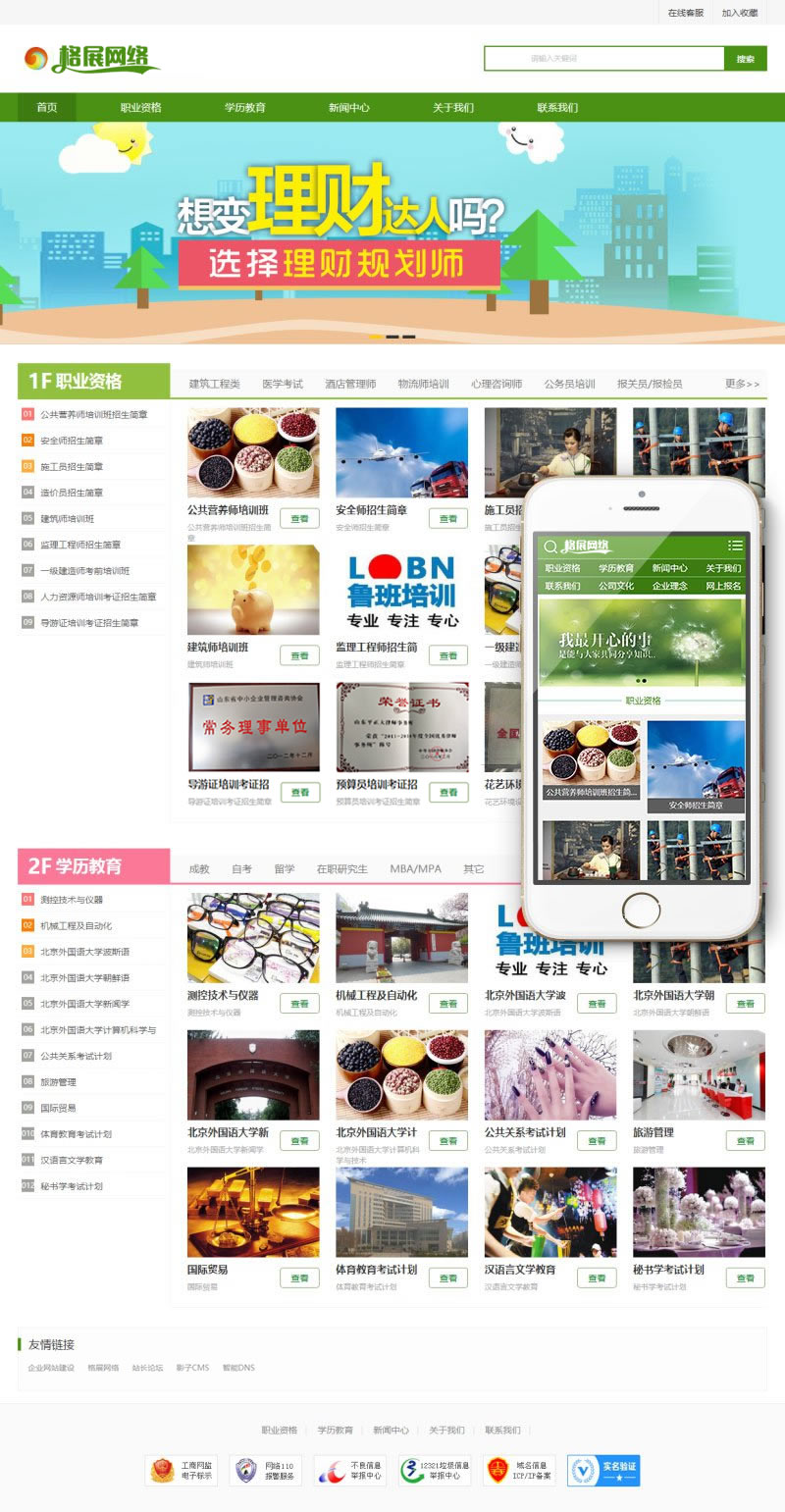 織夢(mèng)最新內(nèi)核開發(fā)的模板,該模板屬于資格證書類、教育機(jī)構(gòu)、學(xué)歷教育、培訓(xùn)學(xué)校類企業(yè)都可使用,