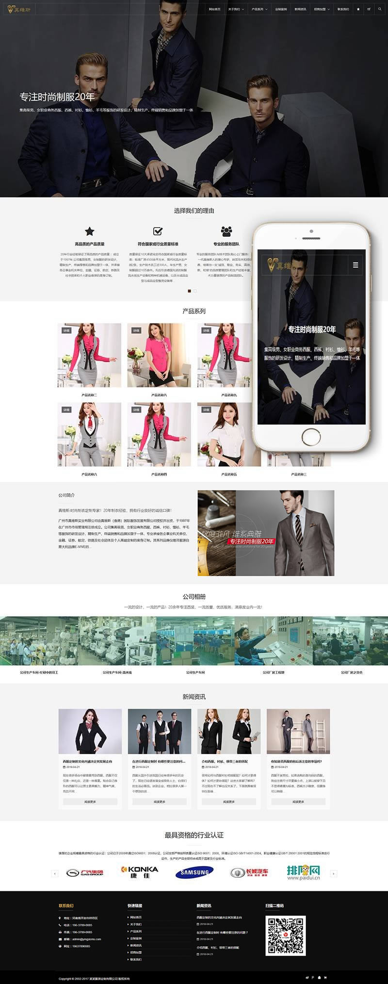 織夢最新內核開發(fā)的模板,該模板屬于企業(yè)通用類、西裝定制、襯衣定制、服裝飾品類企業(yè)都可使用,