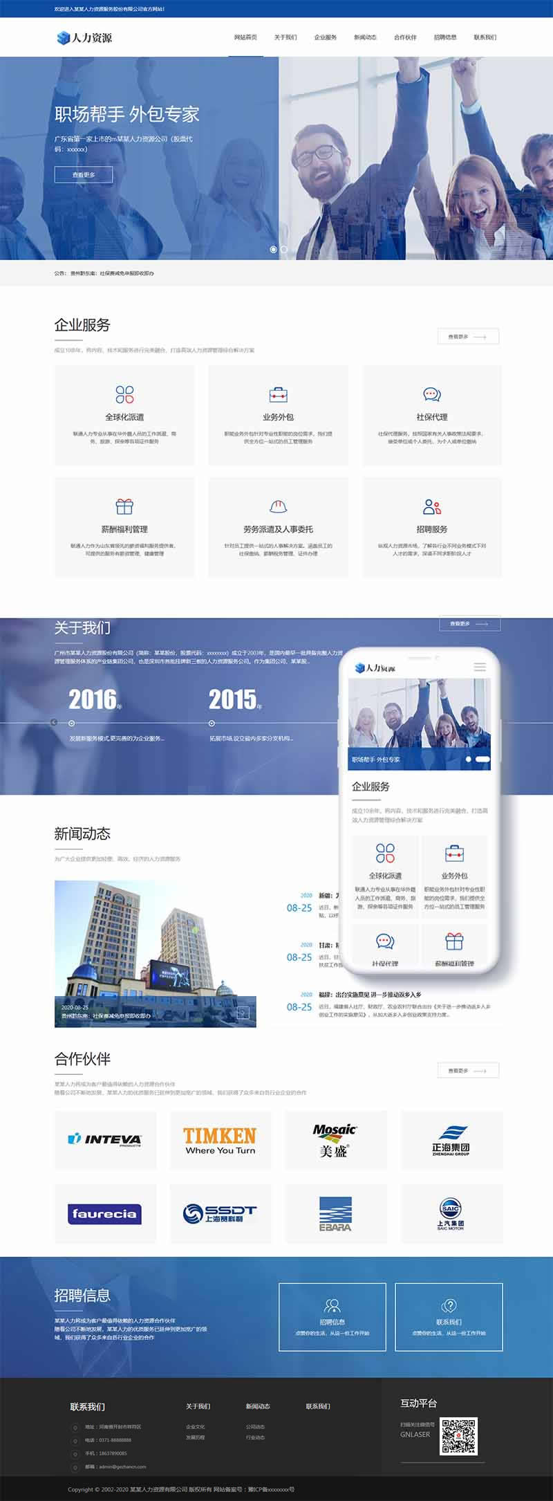 人力資源管理服務類網(wǎng)站pbootcms模板(自適應手機端)+利于SEO優(yōu)化