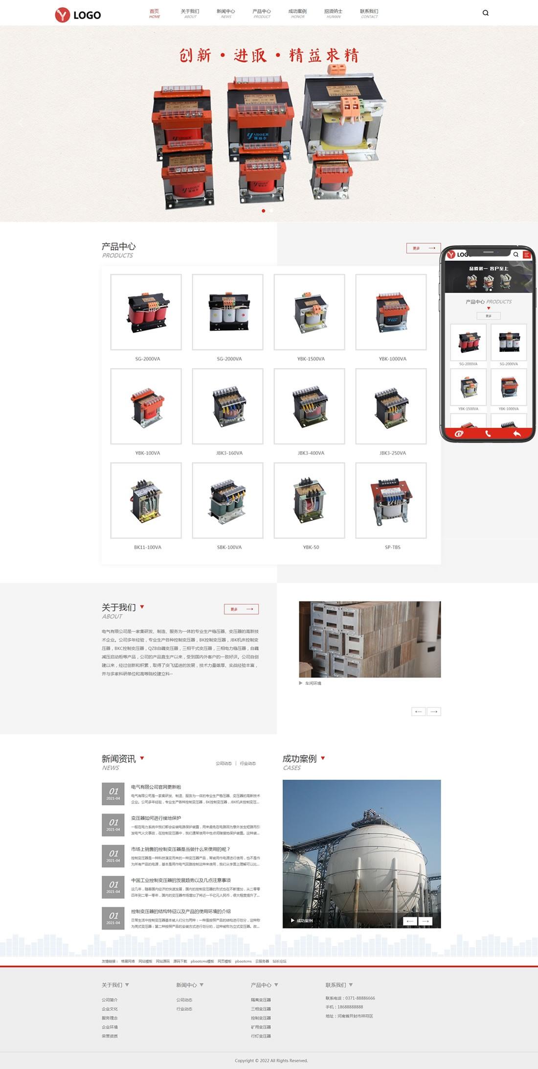 PbootCMS內(nèi)核開發(fā)的模板,該模板屬于控制變壓器、電力穩(wěn)壓器、減壓?jiǎn)?dòng)柜類企業(yè)使用!